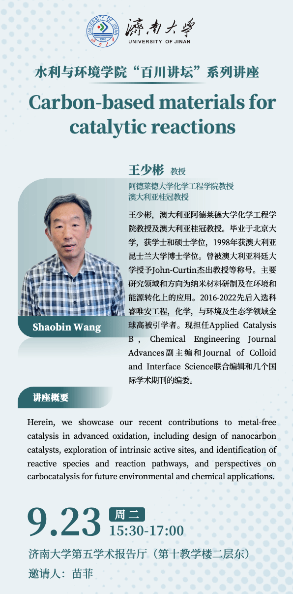 水利与环境学院“百川讲坛”系列讲座:Carbon-based materials for catalytic reactions