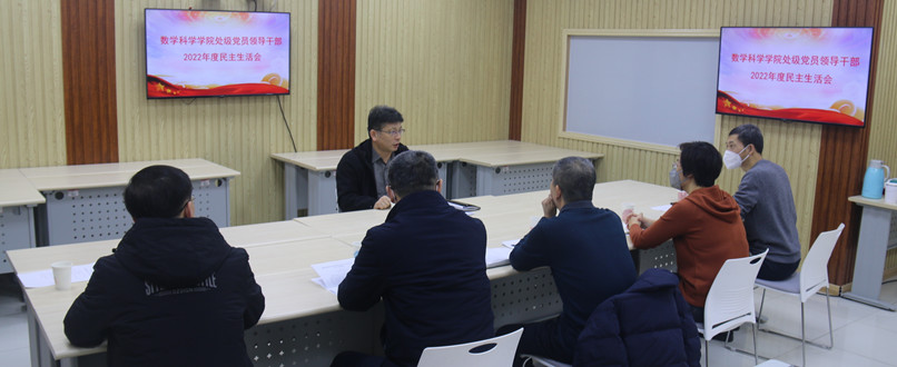 根据学校组织部、纪委统一部署,1月17日,数学科学学院党委在7教智慧教室召开2022年度处级党员领导干部民主生活会。学校党委副书记杨景波到会进行指导,数学科学学院全体班子成员参加会议。 学院党委高度重视本次民...