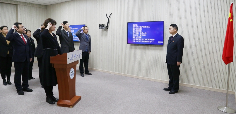 2月18日,学校举行监察官宪法宣誓仪式,校党委常委、纪委书记、省监委驻校监察专员、二级高级监察官续铁主持宣誓仪式并监誓,校纪委副书记、三级高级监察官孙菲菲领誓。 会场庄重严肃,国徽高悬,国旗鲜艳,宣誓台...