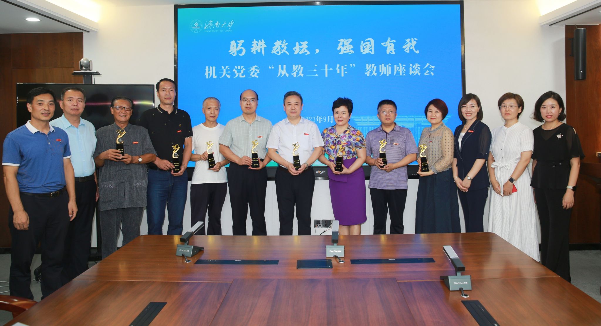 9月7日下午,在第39个教师节来临之际,机关党委举办“躬耕教坛、强国有我”从教三十年教师座谈会。学校党委副书记查玉喜出席会议并讲话,相关部门负责同志、从教三十年教师参加座谈,会议由机关党委书记刘芝主持。会上,查玉喜为从教三十年的教师颁发证书、奖杯。从教三十年教师欢声笑语,真情流露,畅所欲言,回顾了自己奋斗的青春,分享了自己的精彩故事和成长感悟,畅谈了学校三十年来的可喜变化。他们三十年风雨无阻...