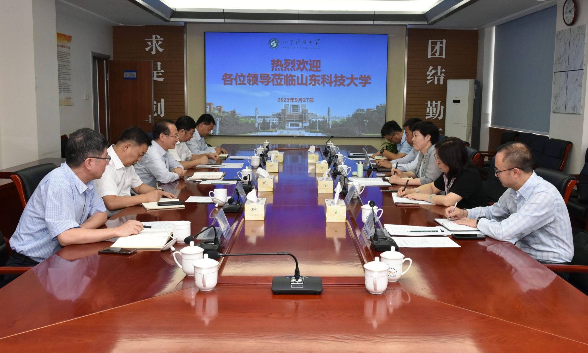 9月27日,学校党委书记刘春华、副校长王霞一行到山东科技大学进行调研交流。党委办公室 校长办公室、教务处 教学质量与评估办公室负责同志参加调研。山东科技大学党委书记罗公利对刘春华书记一行表示诚挚欢迎,详细介绍了学校近期发展情况,就学校办学特色、学科建设以及新一轮审核评估相关工作进行了交流。副校长阳凡林介绍了学校审核评估评建工作开展情况和专家线上评估、入校评估有关事宜。刘春华对山东科技大学的热情接待和经验分享表示感谢,...