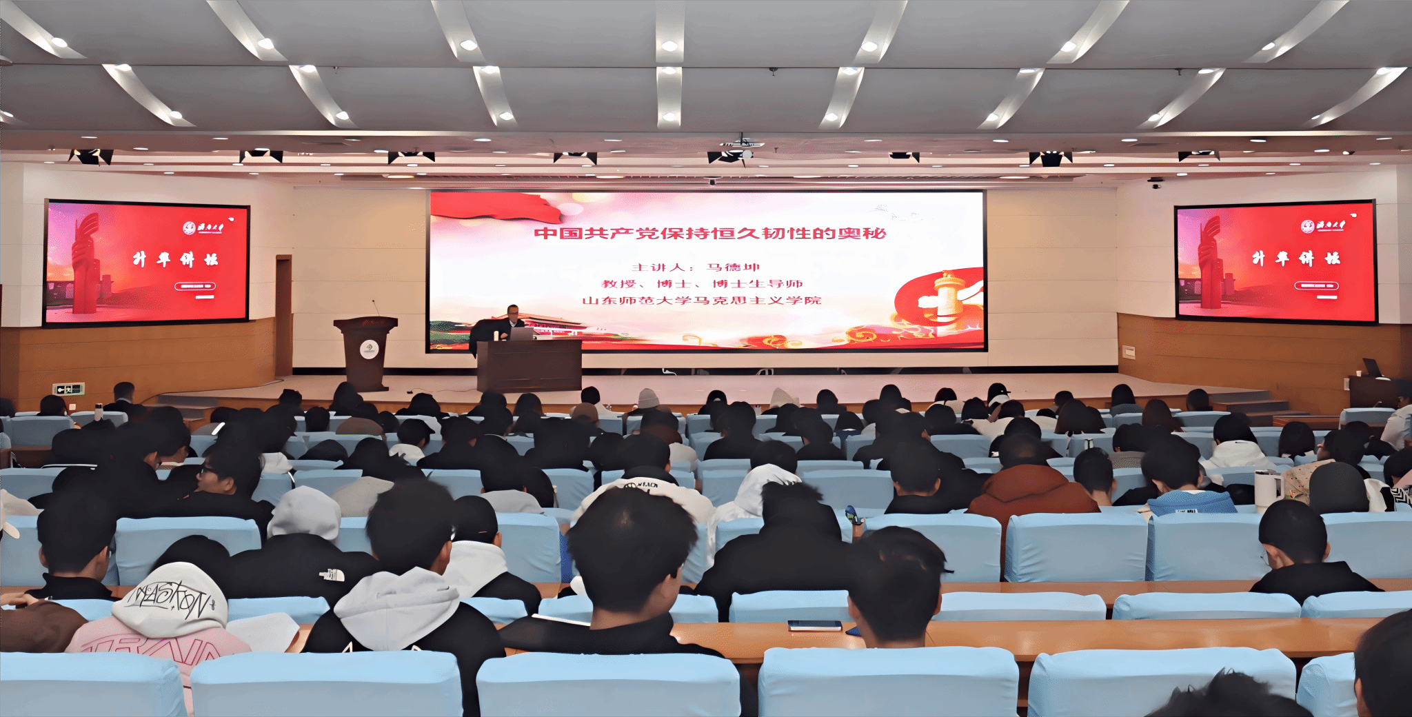 为进一步全面深入学习中国共产党的精神,全面准确阐释好、解读好中国共产党人精神谱系,12月5日上午,学校在第一学术报告厅举办升华讲坛之中国共产党人精神谱系宣讲,邀请山东师范大学马德坤教授作专题报告,党委学生工作部(处)部(处)长卢旺出席活动,第六届大学生思政讲师团全体成员参加活动。活动由党委学生工作部(处)副部(处)长马杰主持。报告开始前,卢旺为马德坤颁发娱乐城平台大学生思政讲师团校外指导教师聘书。马德坤以《中国共产党保持恒久韧性的奥秘》为主题,从“坚持人民至上的宗旨”“科学的理论...